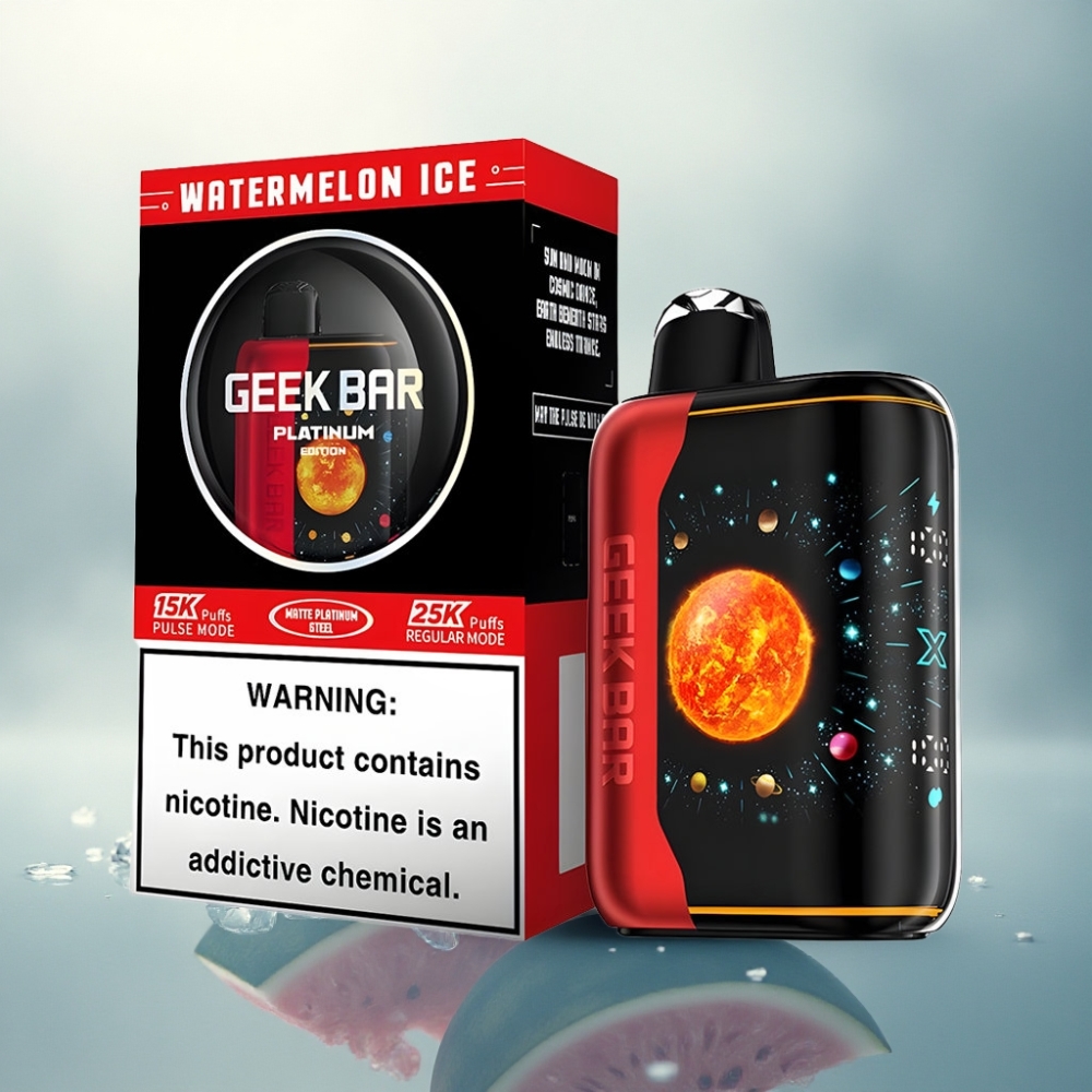GEEK BAR Platinum Edition 25000 Puffs بطيخ مثلج بشاشة ثلاثية الأبعاد ونسبة نيكوتين 2%