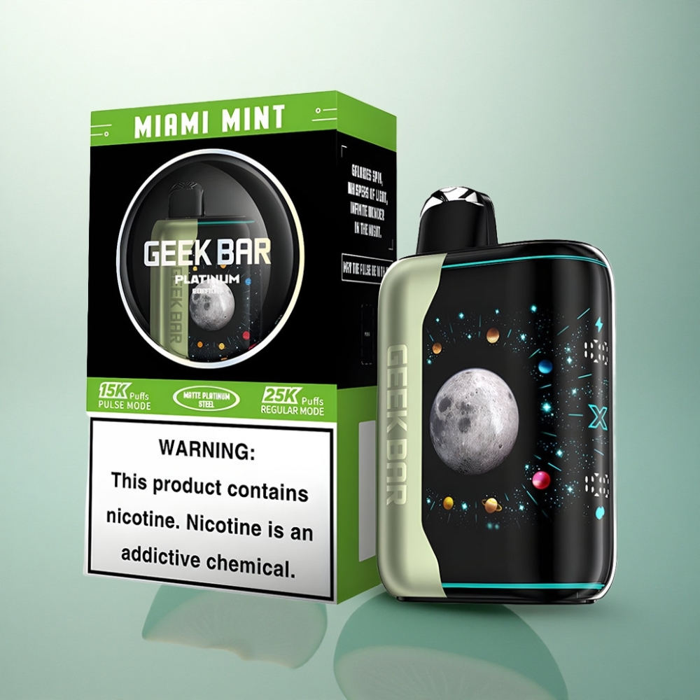 GEEK BAR Platinum Edition 25000 Puffs ميامي منت بشاشة منحنية ثلاثية الأبعاد وقوة نيكوتين 2%