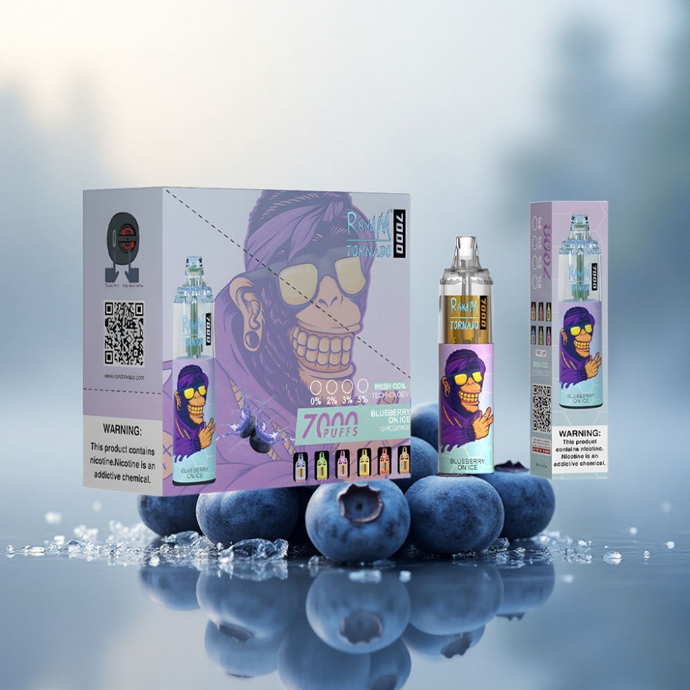 RandM Fumot Tornado 7000 Puffs التوت الأزرق على الثلج مع 14 مل سائل إلكتروني و 5% نيكوتين