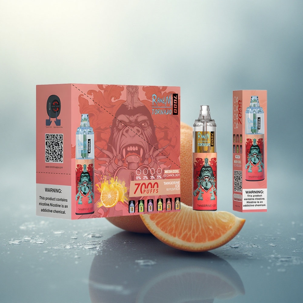RandM Fumot Tornado 7000 Puffs برتقالي جليدي مع 14 مل عصير وبطارية 850 مللي أمبير
