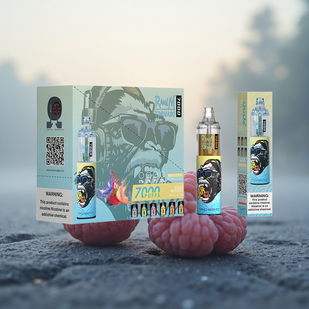 RandM Fumot Tornado 7000 Puffs توت بري متنوع مع 14 مل عصير وبطارية 850 مللي أمبير