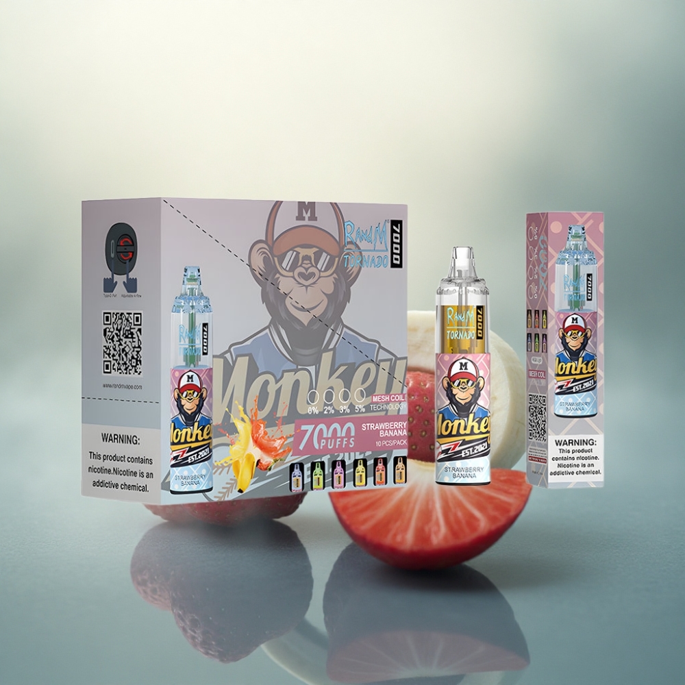RandM Fumot Tornado 7000 Puffs فراولة موز مع 14 مل عصير وبطارية 850 مللي أمبير